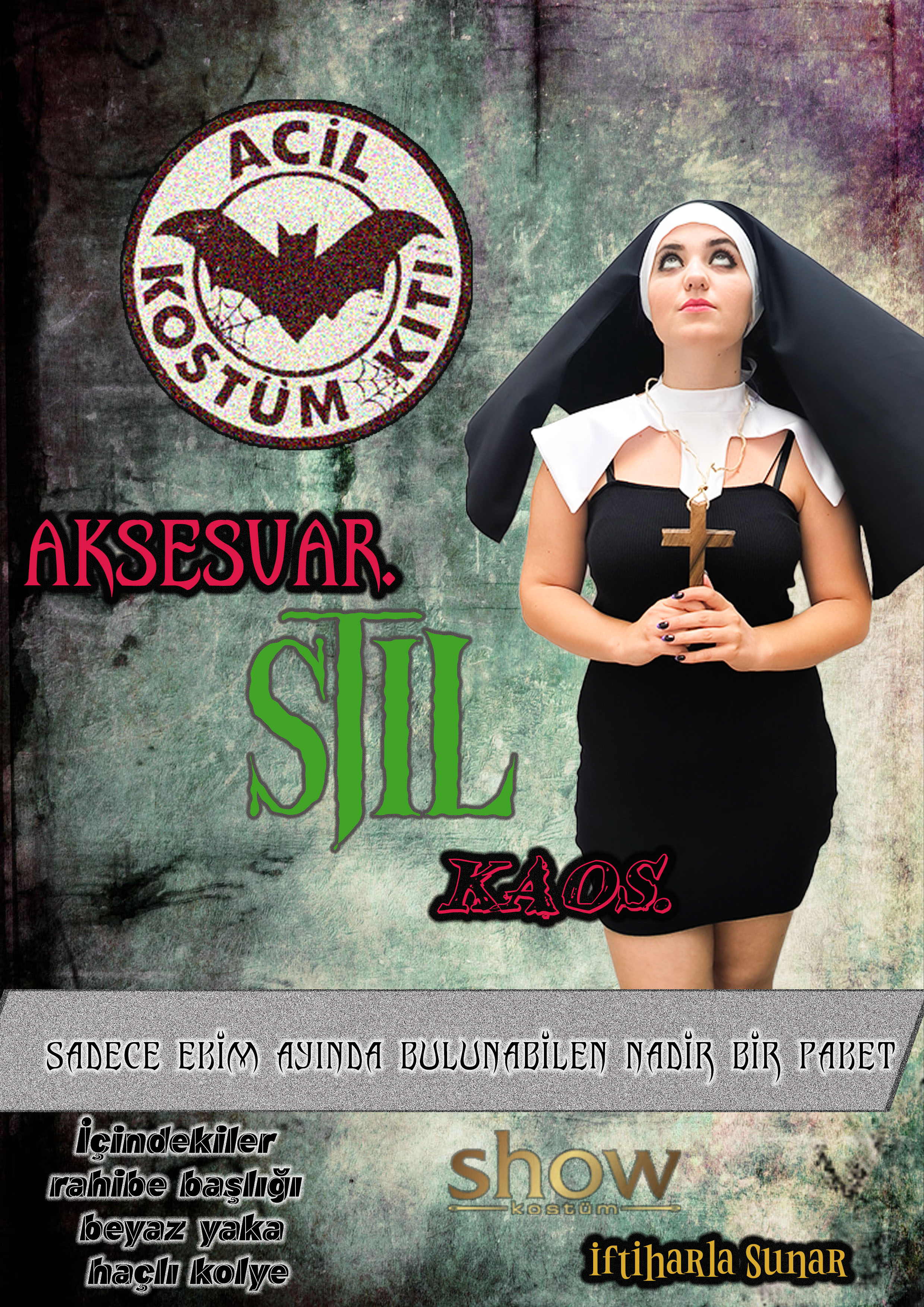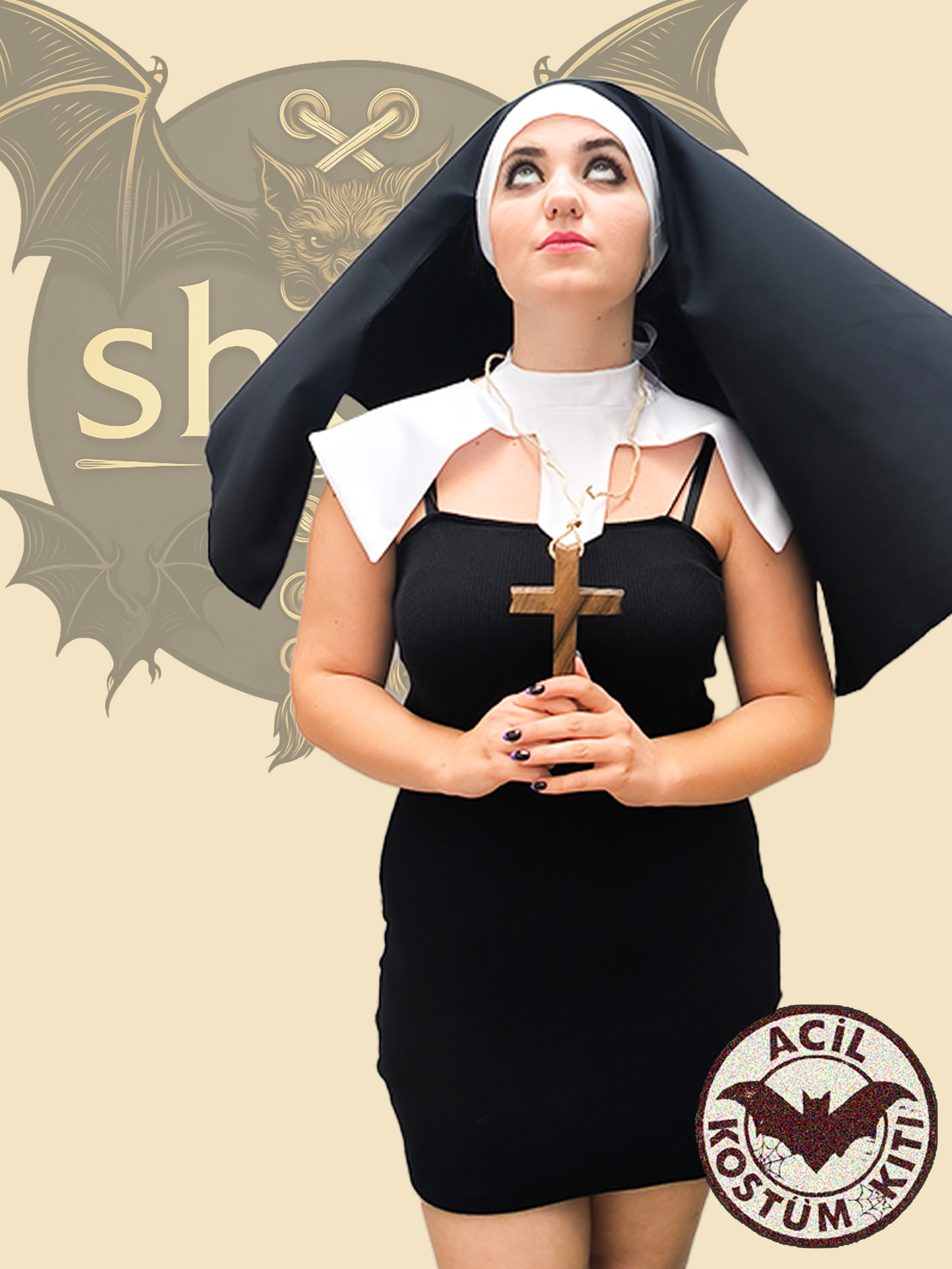 Cadılar Bayramı ve temalı partiler için karanlık, zarif ve kolay kombinlenebilir bir görünüm arayanlara özel! Acil Kostüm Kiti – Rahibe, gotik tarzı sade bir şıklıkla buluşturur. Standart beden uyumuna sahip bu özel set, evdeki siyah elbisenle kolayca tamamlanabilir. Kutu içeriği: Rahibe başlığı Beyaz yaka Haçlı kolye Sadece birkaç parçayla etkileyici bir Halloween görünümü oluşturmak artık çok kolay. Minimal, karizmatik ve tamamen sana ait bir tarz için bu gotik rahibe kostüm seti tam sana göre. Sınırlı üretimdir ve yalnızca Ekim ayında satıştadır. ?